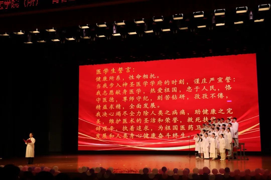 晚会进行了庄严的医学生宣誓,愿即将开启“医”路新旅途的学子们放飞梦想,书写华章,砥砺奋斗坚守医者初心,奉献青春铸就健康中国。全体师生共同起立,举起右手,庄严宣誓。