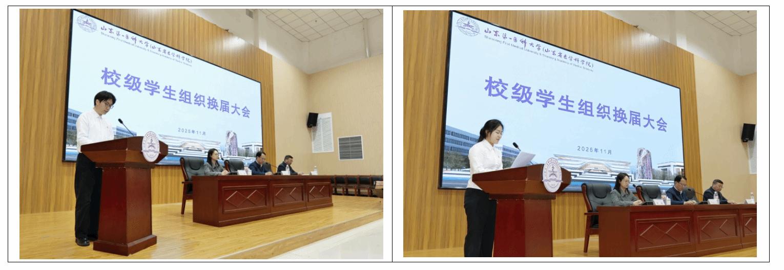11月5日,2025年校级学生组织换届大会在泰安校区举行。校(院)党委委员、副校(院)长贾海宁出席会议并讲话。