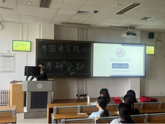 为更好地激发学生的考研热情,营造优良学风,5月28日下午,外国语学院在教学南楼C1001举办第二场2024届考研经验分享会。此次分享会邀请了李冰清、李阳阳、娄霄飞以及王奕菲四位同学分享他们的考研经历与感悟。本次分享会由学工办主任宋雪主持,外国语学院2022级和2023级学生参加。