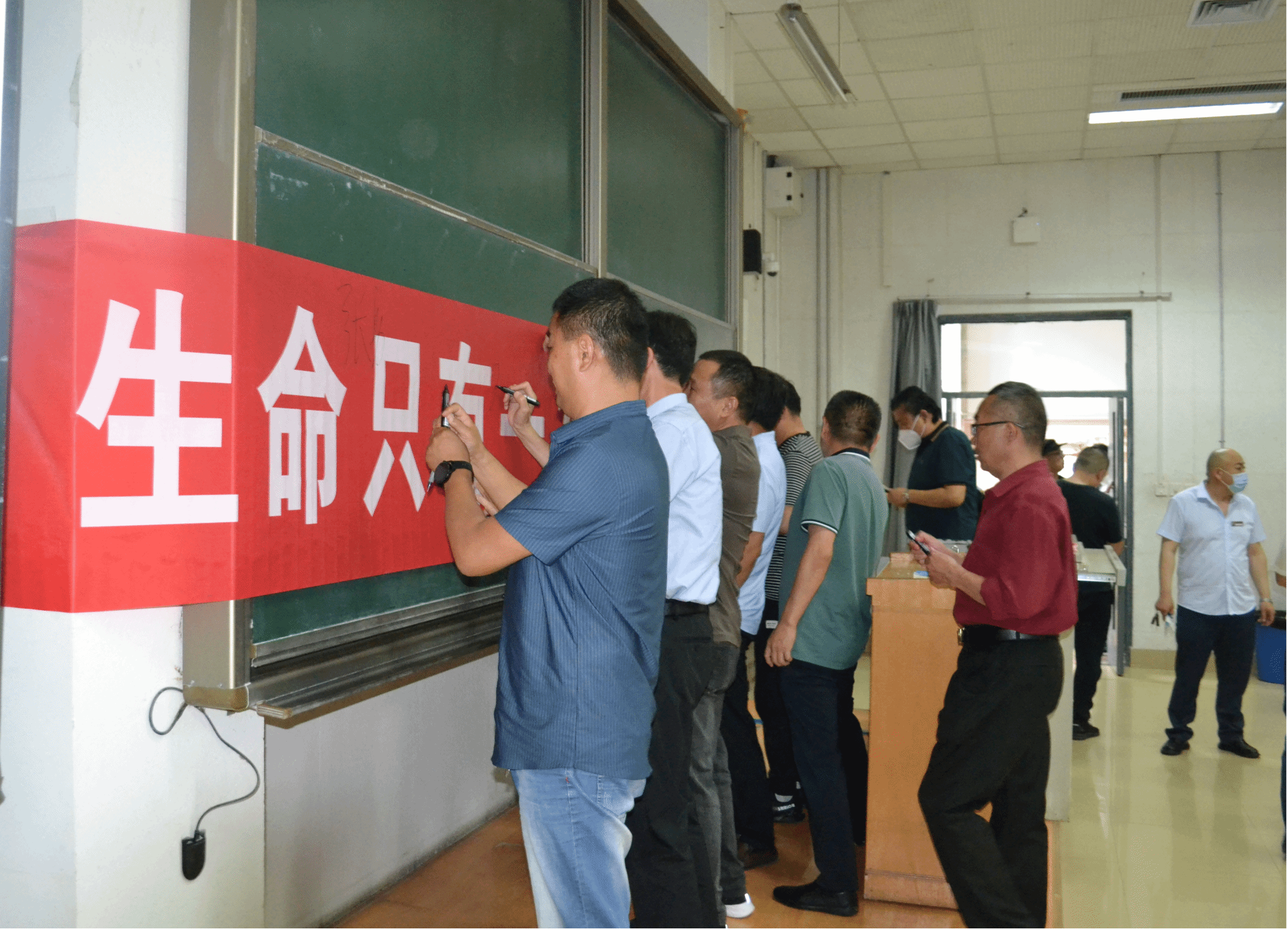 为落实校(院)关于开展2023年“安全生产月”活动的通知要求,6月13日,后勤管理部分别在主校区和长城路校区集中收看专题片《生命重于泰山》、《红线》,并举行“生命只有一次,安全从我做起”签名活动。