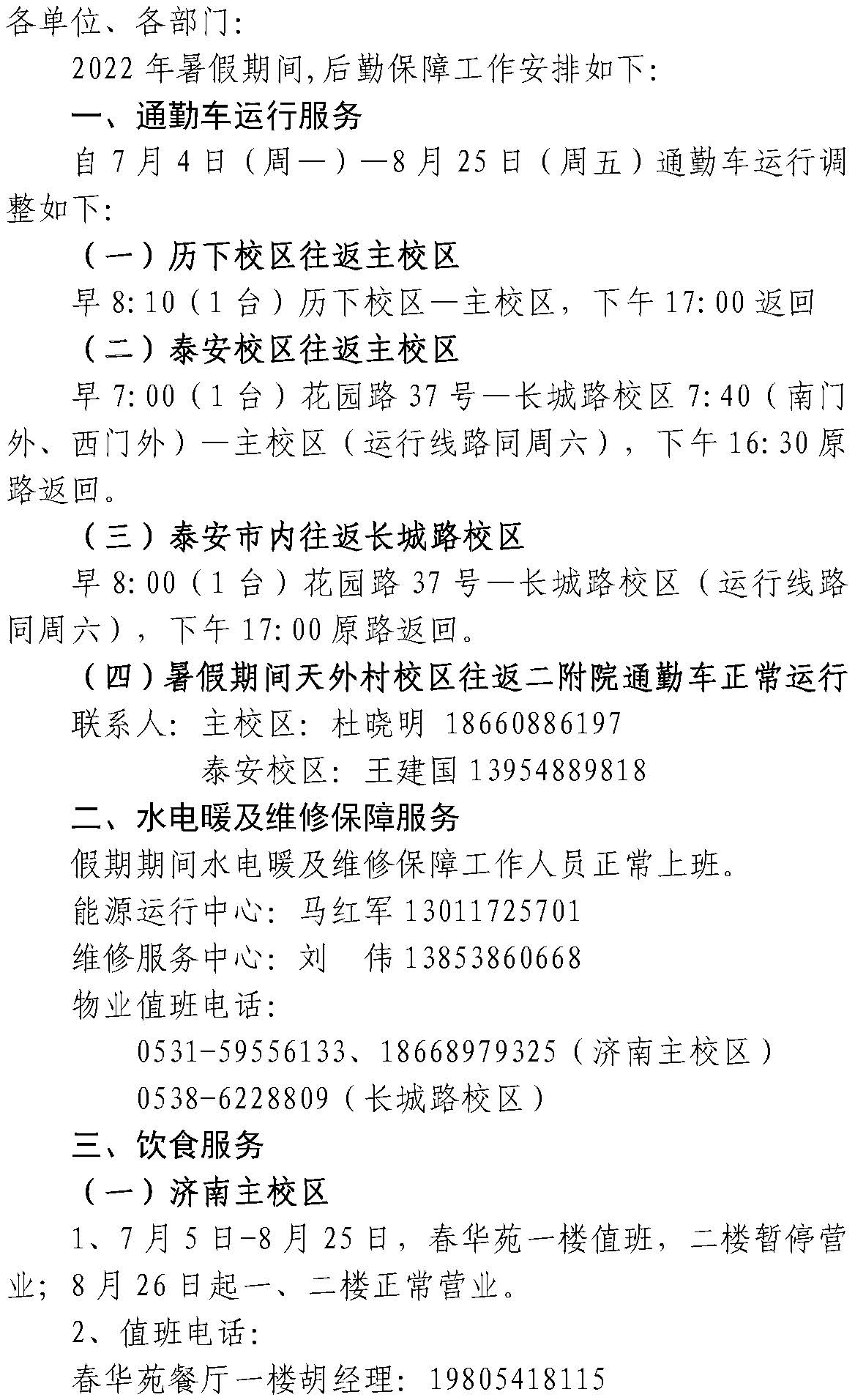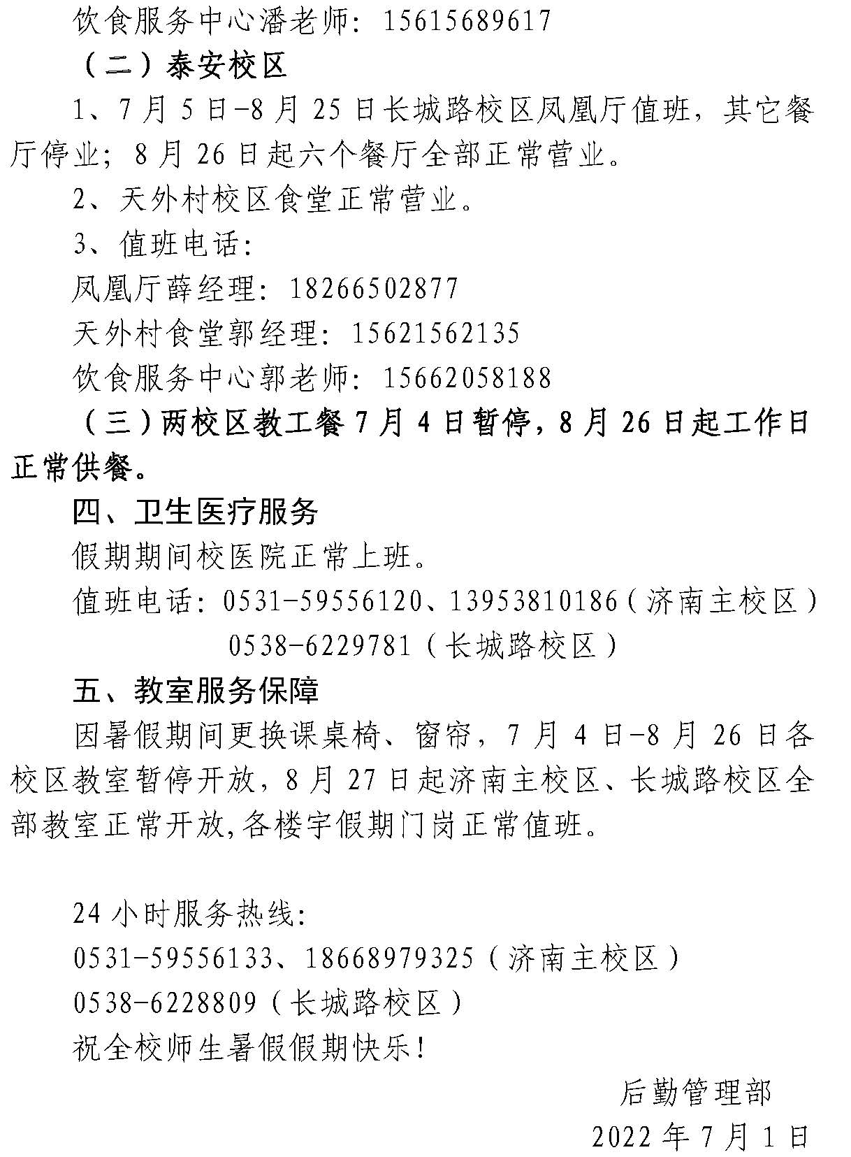 关于2022年暑假后勤保障服务工作安排的通知