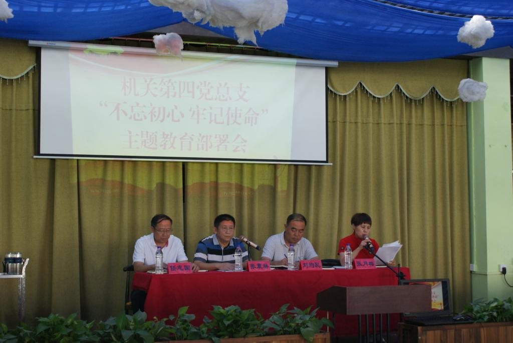 9月24日下午,机关第四党总支“不忘初心、牢记使命”主题教育动员部署会议在天烛厅举行。机关第四党总支书记张震林作动员讲话,对后勤、基建开展主题教育进行了部署。基建处处长任志国、后勤处处长刘均民出席会议并讲话,会议由党总支副书记、后勤处副处长张月梅主持。