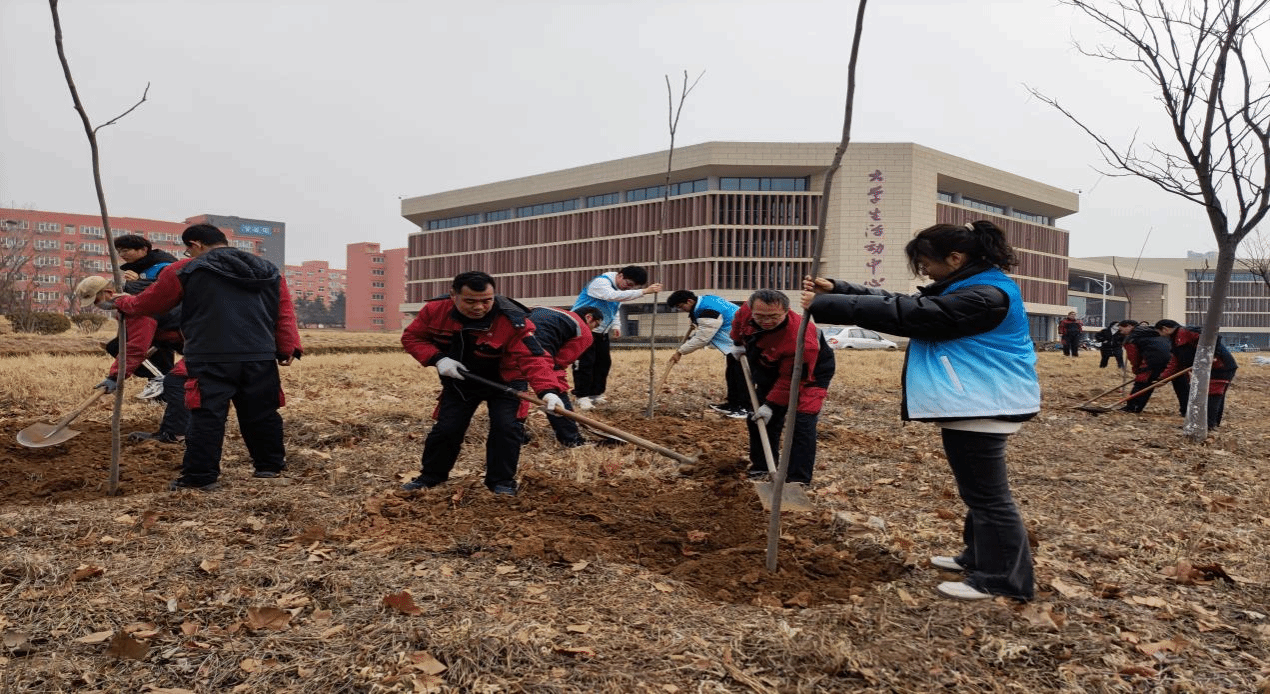阳春三月,在全国第46个植树节到来之际,为进一步增强广大师生员工爱护环境、美化校园的主人翁意识,3月7日,后勤管理部党总支第三支部、校园环境服务中心组织青年志愿者服务总队、领航工程联系班级、招商积余(中航物业)百度开云体育app项目部,在长城路校区开展了以“树植校园,共筑绿色梦想;再植新绿,共建美丽校园”为主题的争创全国文明校园植树节爱树植树活动。