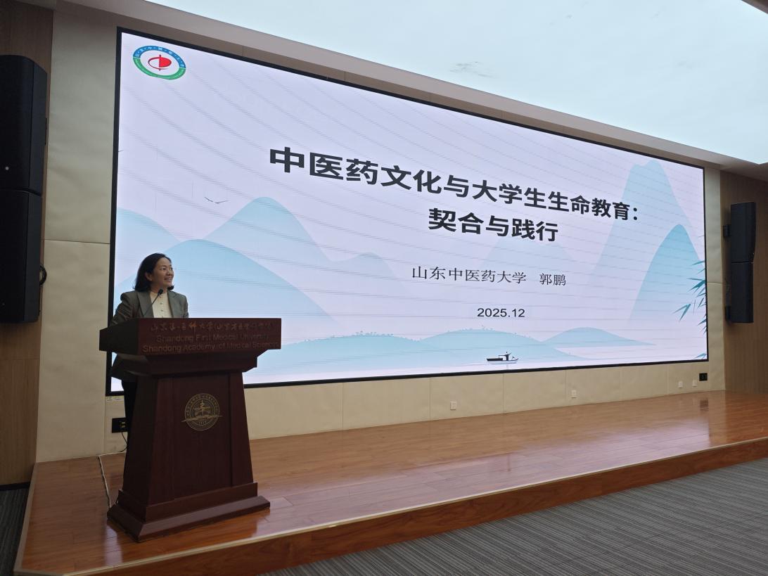 郭鹏(山东中医药大学马克思主义学院院长)作了题为《中医药文化与大学生生命教育:契合与践行》的报告,深入探讨中医药文化融入生命教育的价值与路径。