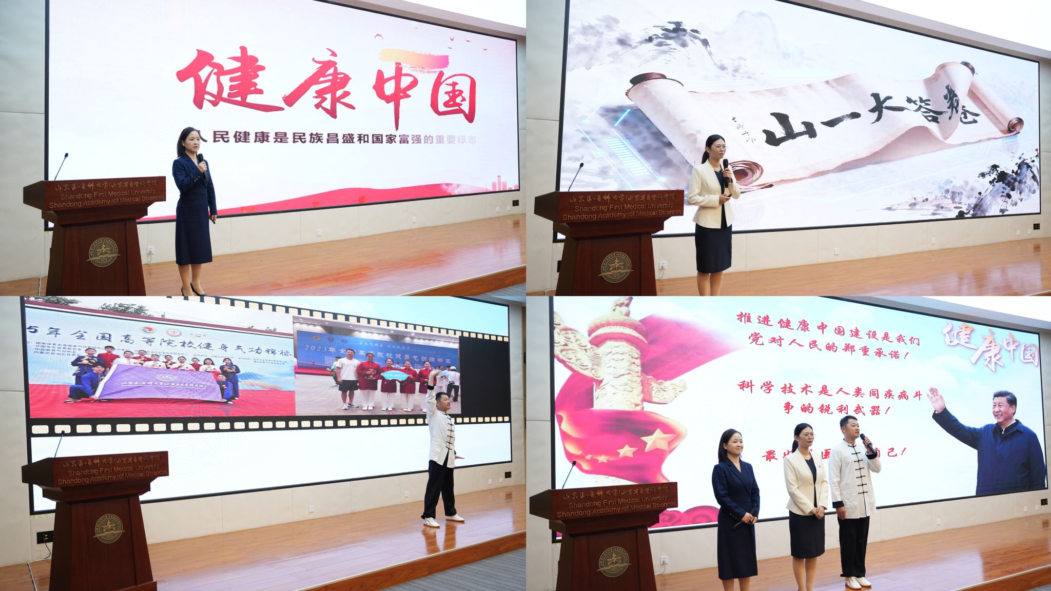 百度开云体育app马克思主义学院教师徐宏霞、孙亚男与通识教育部教师李晓铭进行了“健康中国”思政大课教学展示,通过理论讲解与八段锦实践相结合的方式,生动呈现了思政课程与健康教育的有机融合。