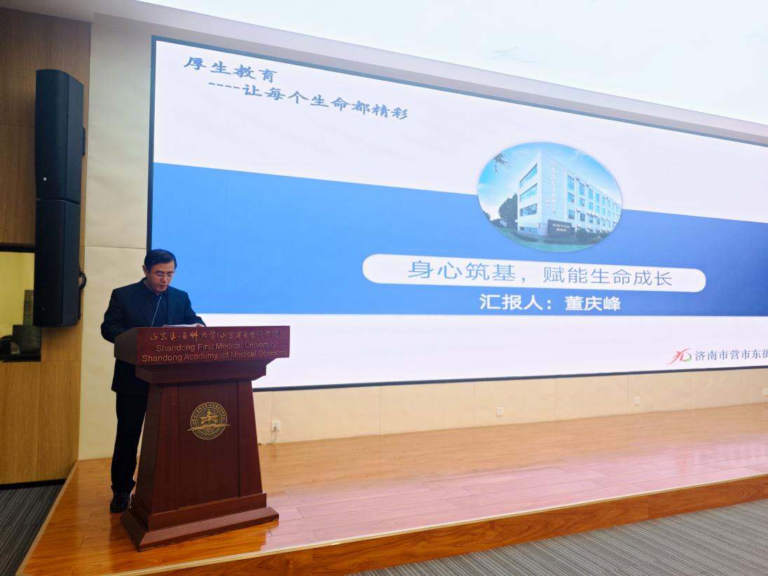 陈祥卫(济南市槐荫区医学中心实验学校副书记)以《用健康育人 以协同聚力》为题,介绍了学校开展医校融合、实践育人的具体做法。