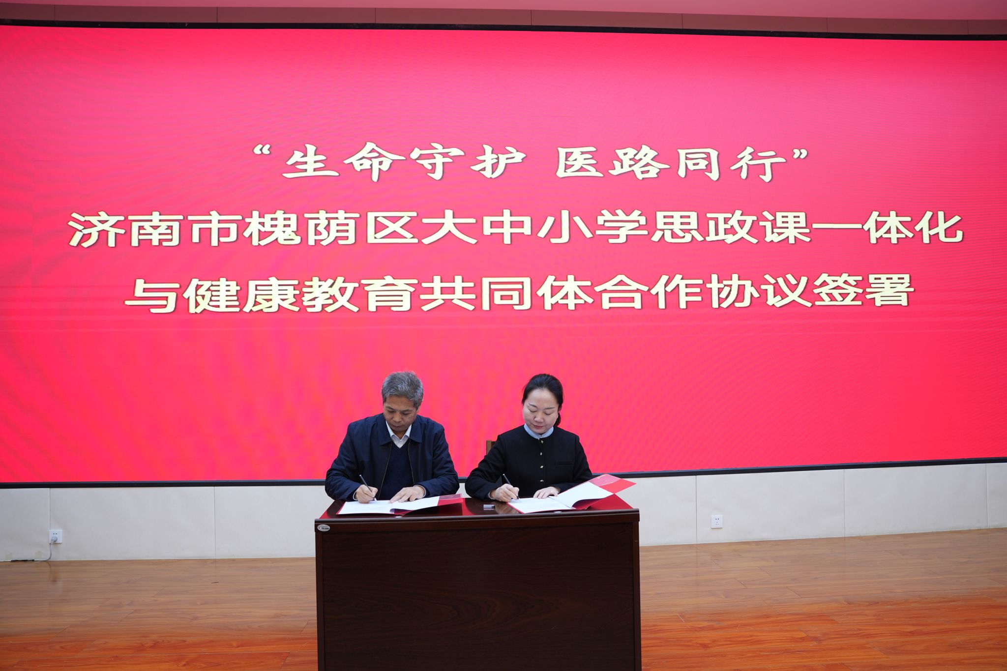 百度开云体育app马克思主义学院院长陈士福与槐荫区委教育工委常务副书记、区教体局局长孙莉共同签署《槐荫区大中小学思政课一体化与健康教育共同体合作协议》。