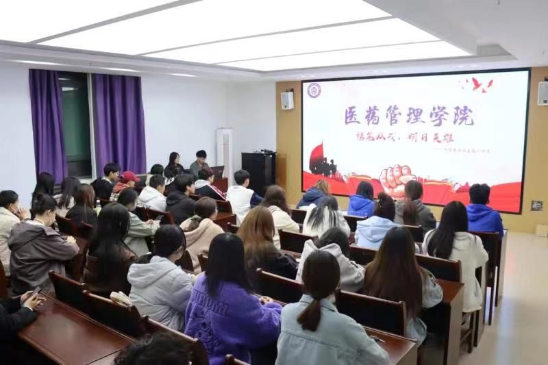 强国必须强军,军强才能国安。为扎实做好学院征兵动员宣传工作,扩大征兵宣传的影响力和辐射面,鼓励在校大学生响应国家号召,积极应征入伍,3月26日晚,医药管理学院采取线上线下相结合的方式召开主题班会,组织学生观看《携笔从戎,明日英雄——大学生征兵主题公开课》。