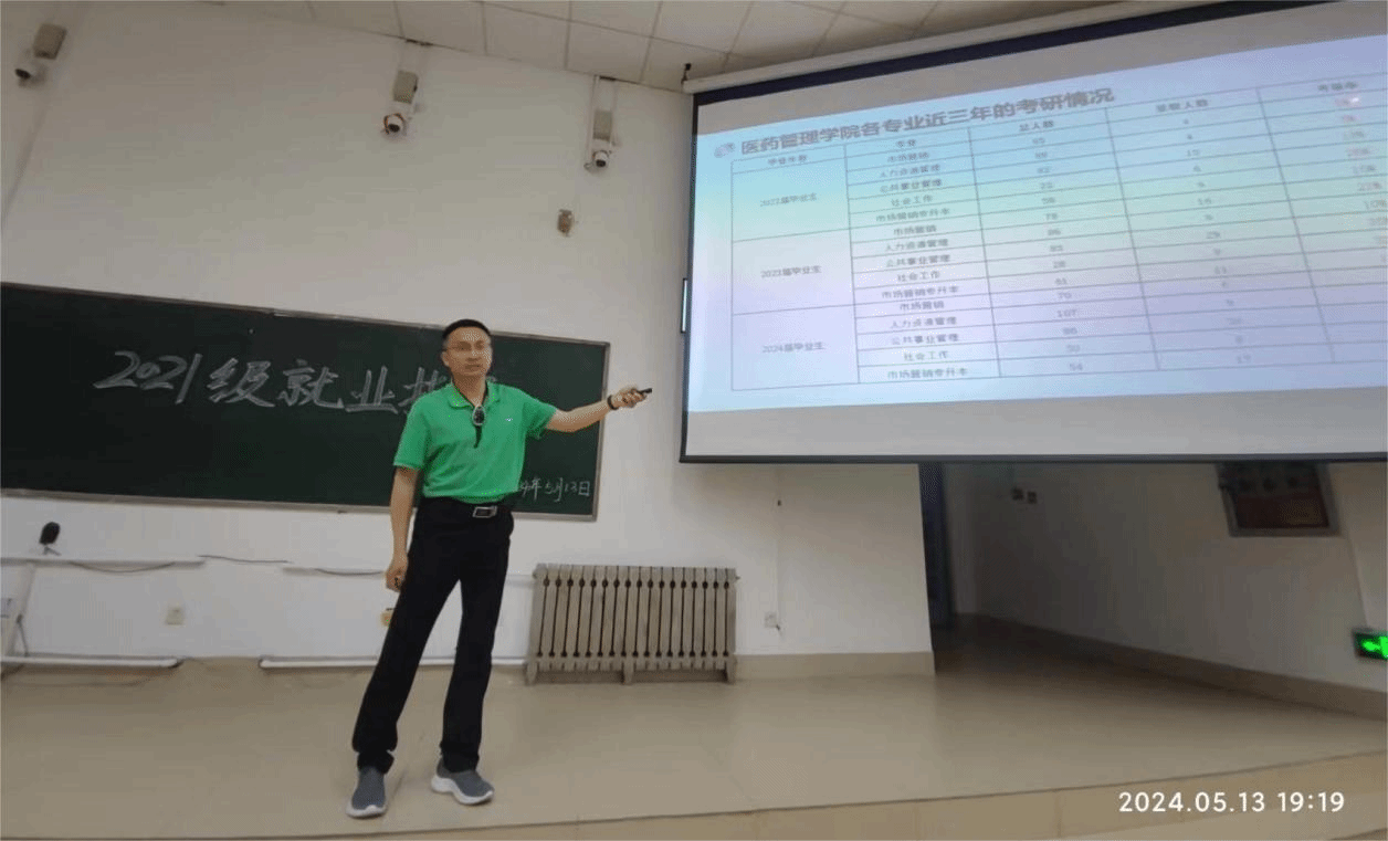为帮助学生正确认识就业形势、拓宽就业视野、实现高质量就业,5月13日,医药管理学院于教学南楼C2024举办书记讲坛|2021级就业指导培训,培训由学院党委书记杜江山主讲,安静老师主持。