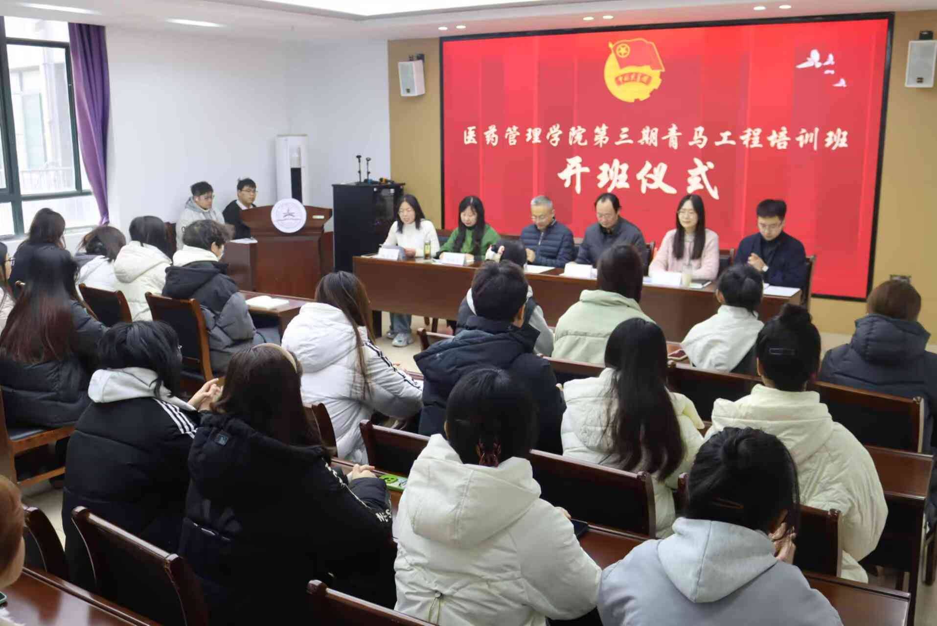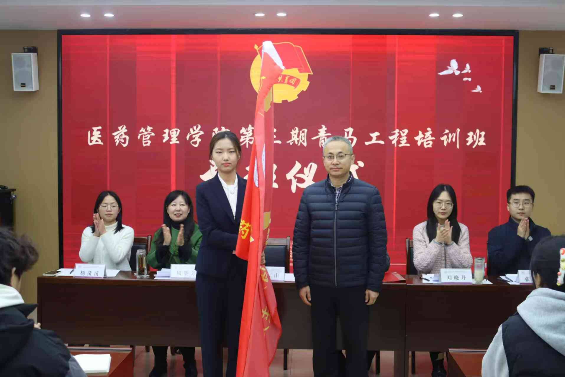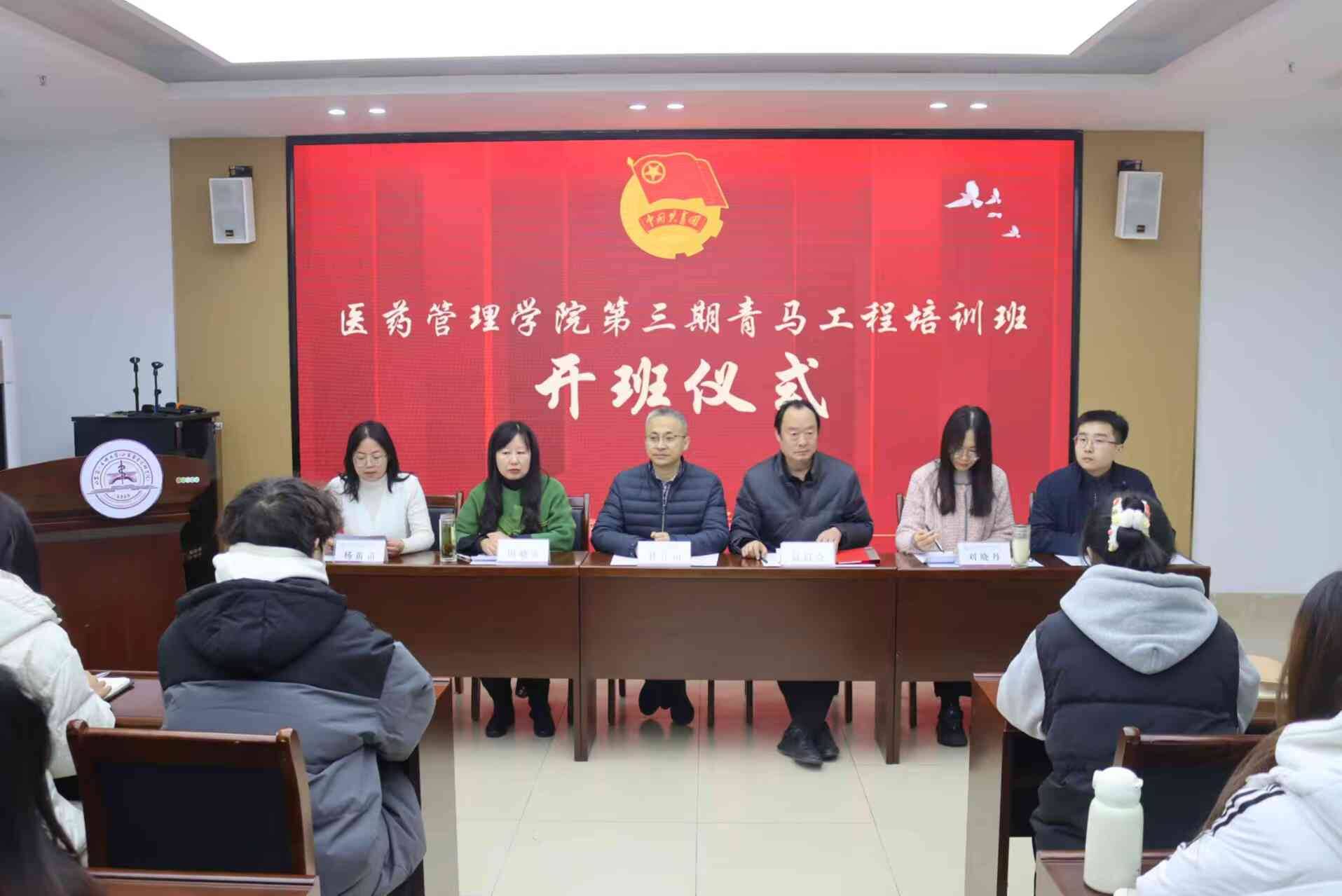 扎实推进“青年马克思主义者培养工程”,引导我院学子树立崇高的理想信念,促进青年学生全面成长。12月19日上午,医药管理学院在学院大会议室召开第三期青马工程培训班开班仪式。学院党委书记杜江山,副书记赵启会,组织员周晓芳,团委副书记杨苗苗,辅导员刘晓丹、张少儒以及青马班全体成员参加活动。杨苗苗主持本次开班仪式。