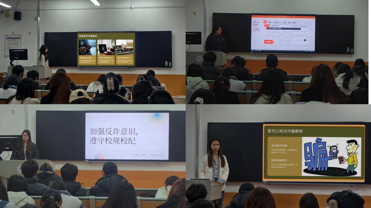 活动中,老师围绕网络刷单、买卖游戏装备、高薪兼职、“校园贷”四大高发高危场景,结合典型案例拆解诈骗套路并明确防范准则。网络刷单属违法虚假宣传,“低投入高回报”是诈骗诱饵,易致恶性循环;游戏装备购买需坚守正规渠道与理性消费原则;“无门槛高薪资先交押金”的兼职均为高危信号,求职应通过可靠渠道;“校园贷”危害极大,学生需树立科学消费观,远离非正规网贷。