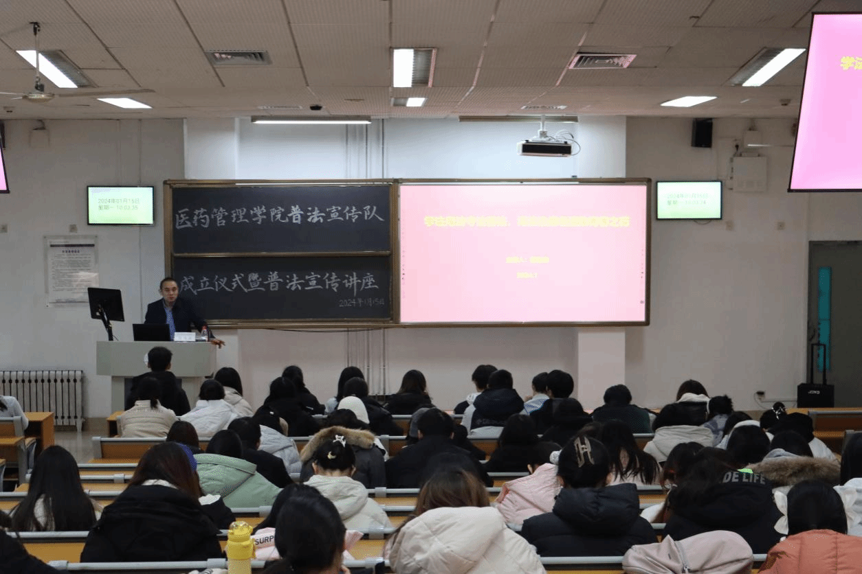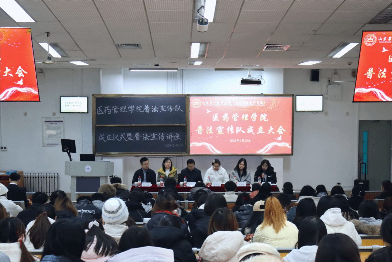 为弘扬宪法精神,提高师生法律意识,1月15日,医药管理学院“七彩阳光”青年志愿服务队于南C1001举行宪法普法宣传队成立仪式暨普法宣传讲座。学院党委书记杜江山、学工办主任董灵芝、全体辅导员、普法宣传队志愿者及部分学生代表参加了此次活动。