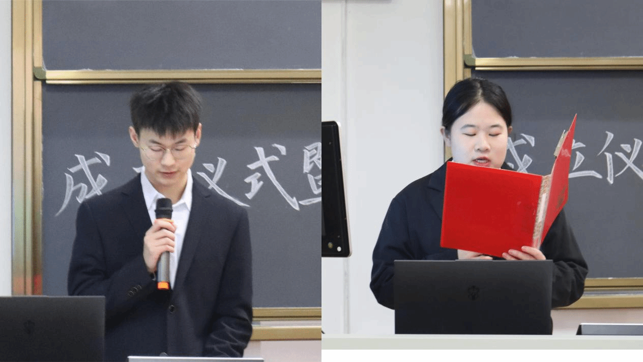 普法宣传队队长耿智超进行发言,他首先感谢学校领导老师的任与关怀,接着阐述了对宣传队未来工作的期望与规划。他提出将带领同学们不断提高普法专业能力,丰富普法形式,力求找到最有效的宣传方式,将宪法精神普及到每位同学的心中。