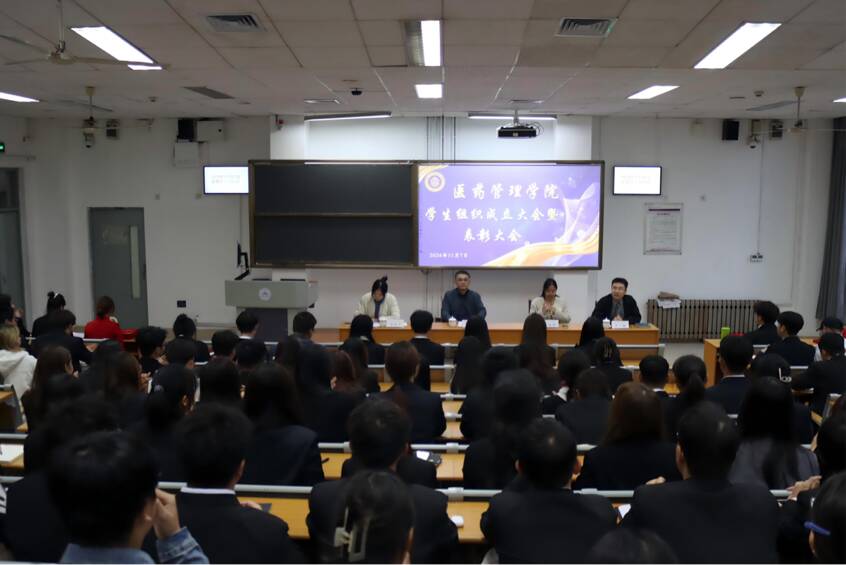 为增强学生组织成员的归属感和认同感,促进成员之间的相互了解和团队协作精神,11月7日下午,医药管理学院在教学南楼c1002召开学生组织成立大会暨表彰大会,医药管理学院人力资源管理系主任于忠军教授,团委副书记杨苗苗,辅导员刘晓丹、张少儒,优秀学生干部代表,HRU优秀志愿者代表,第二十三届主席团及第二十四届学生会全体成员参加本次会议,张少儒主持会议。