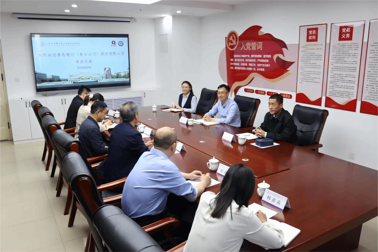 4月25日,青岛银行泰安分行行长谭长臻一行到我院访问交流。学院院长陈士福、党委书记杜江山出席会议并热情接待,副院长陈海玉主持会议。