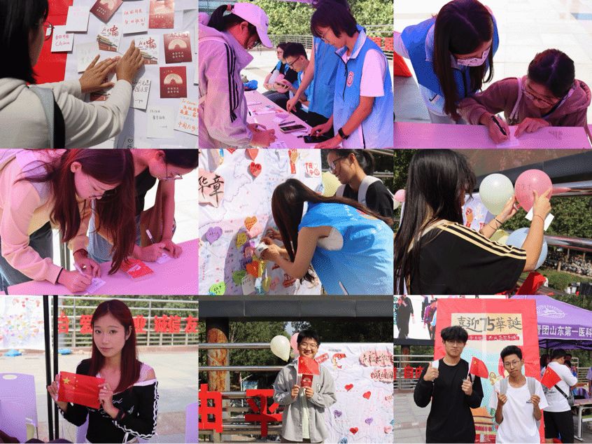 在中华人民共和国成立75周年之际,山一大医药管理学院在教学楼举办系列活动,告白祖国,为祖国庆生,抒发山一大学子的爱国热情,增强当代青年的民族认同感和凝聚力,展现新时代大学生的历史责任感与使命感。