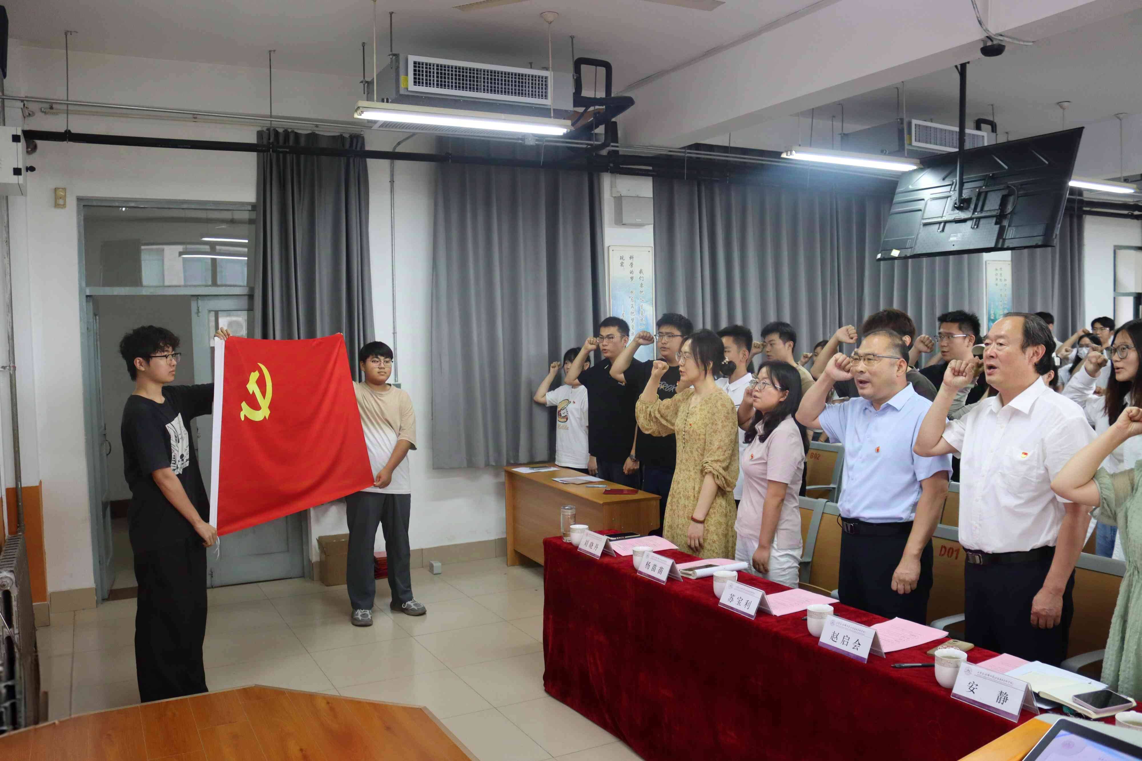 重温入党誓词环节,全体党员面向党旗,举起右拳,字字铿锵,重温入党时的庄严承诺。这铮铮誓言,是毕业生党员们对党、对人民许下的终身诺言。