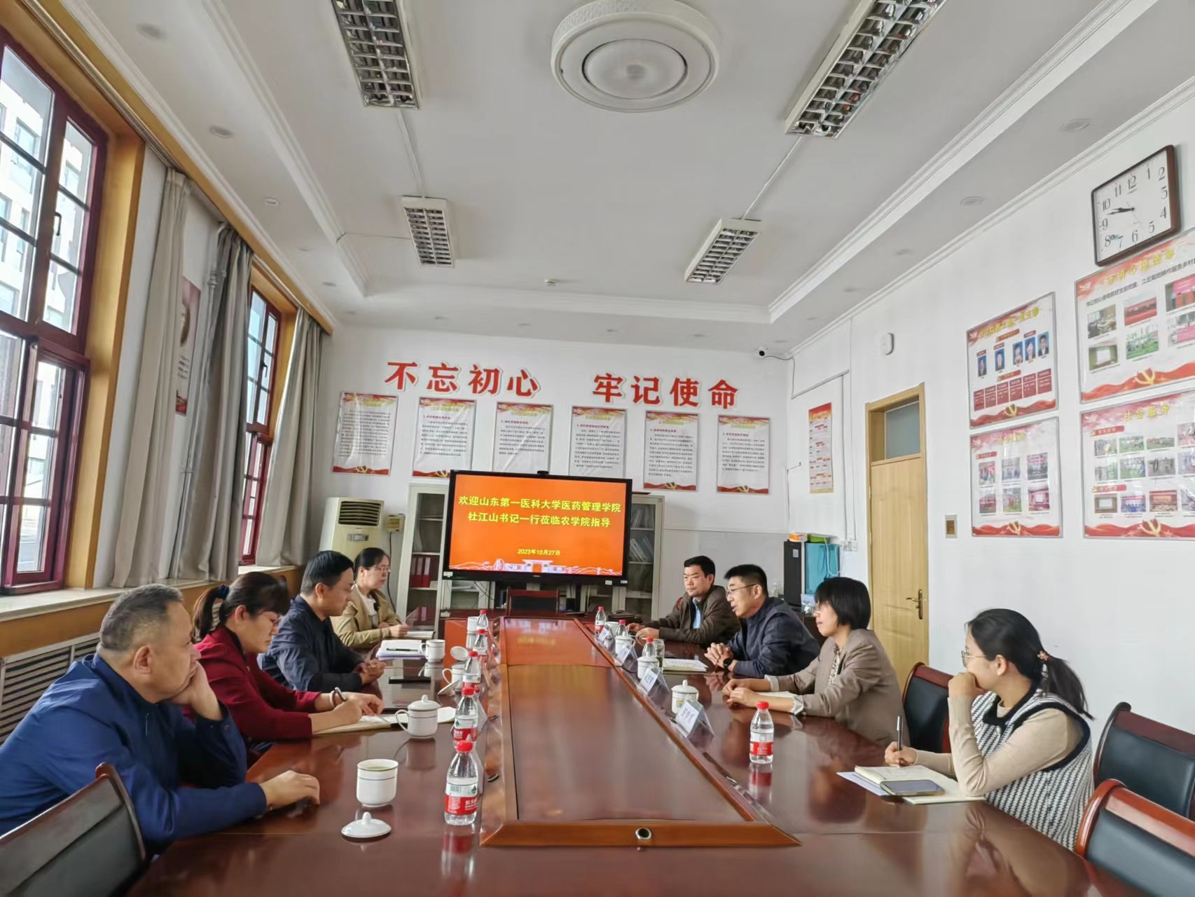 2023年医药管理学院财政金融系党支部获批学校“双带头人”教师党支部书记工作室培育创建项目,为更好地开展相关培育创建工作,近日,学院党委书记杜江山带领财政金融系党支部成员张继鹏、林俊山和赵慧赴全国首批“双带头人”教师党支部书记工作室山东农业大学和鲁东大学调研党建“双创”工作。两所高校培育创建单位有关负责人参加了交流座谈活动。