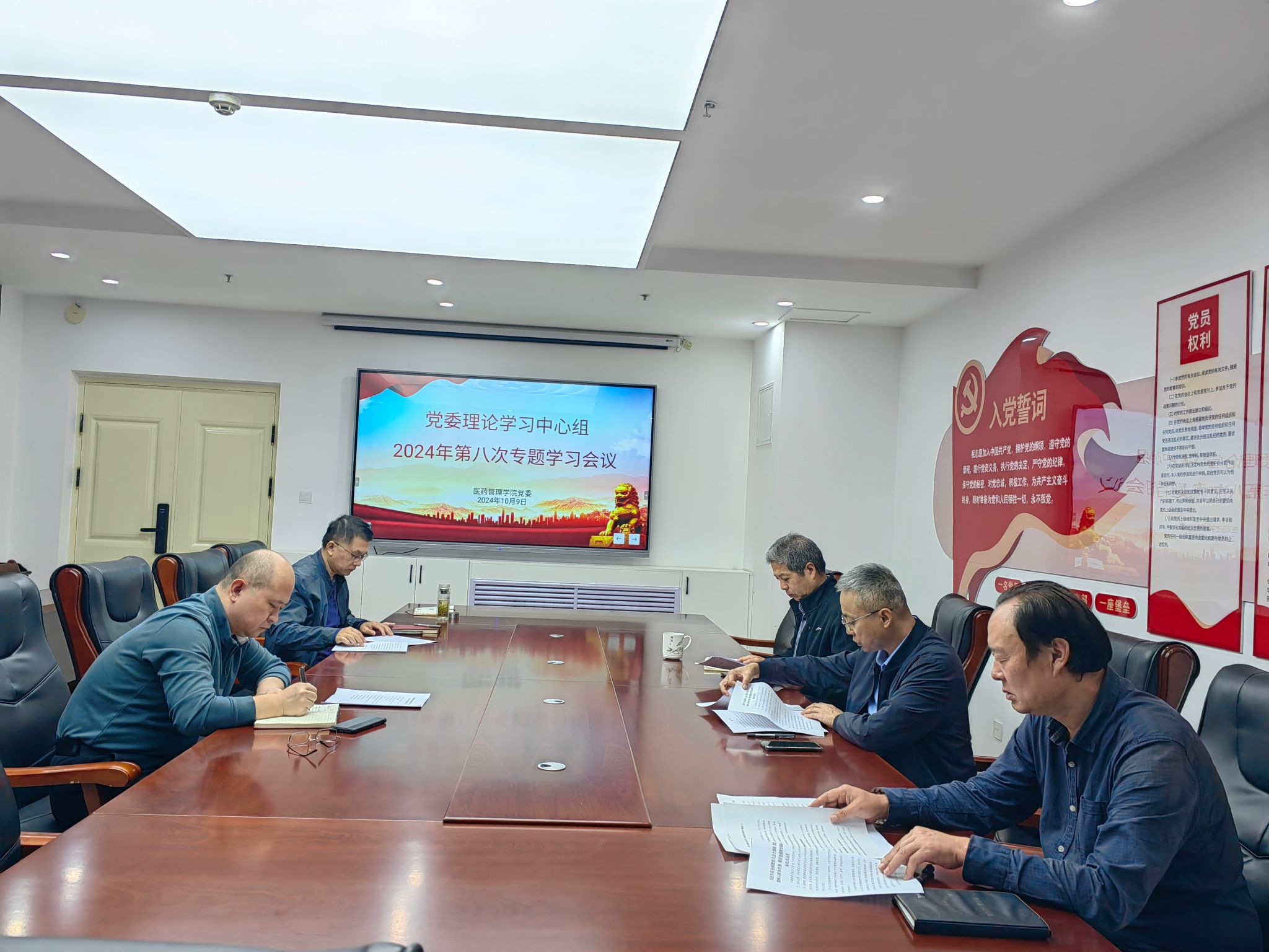 10月9日上午,医药管理学院召开党委理论中心组2024年第八次集体学习。会议由学院党委书记杜江山主持,党委理论学习中心组全体成员参加。