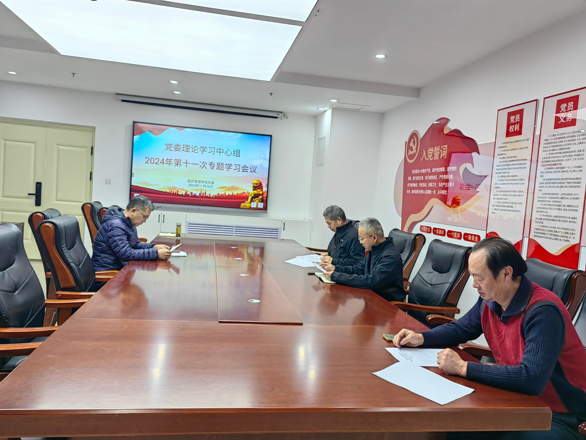 11月26日,医药管理学院召开党委理论中心组2024年第十一次集体学习。会议由学院党委书记杜江山主持,党委理论学习中心组全体成员参加。
