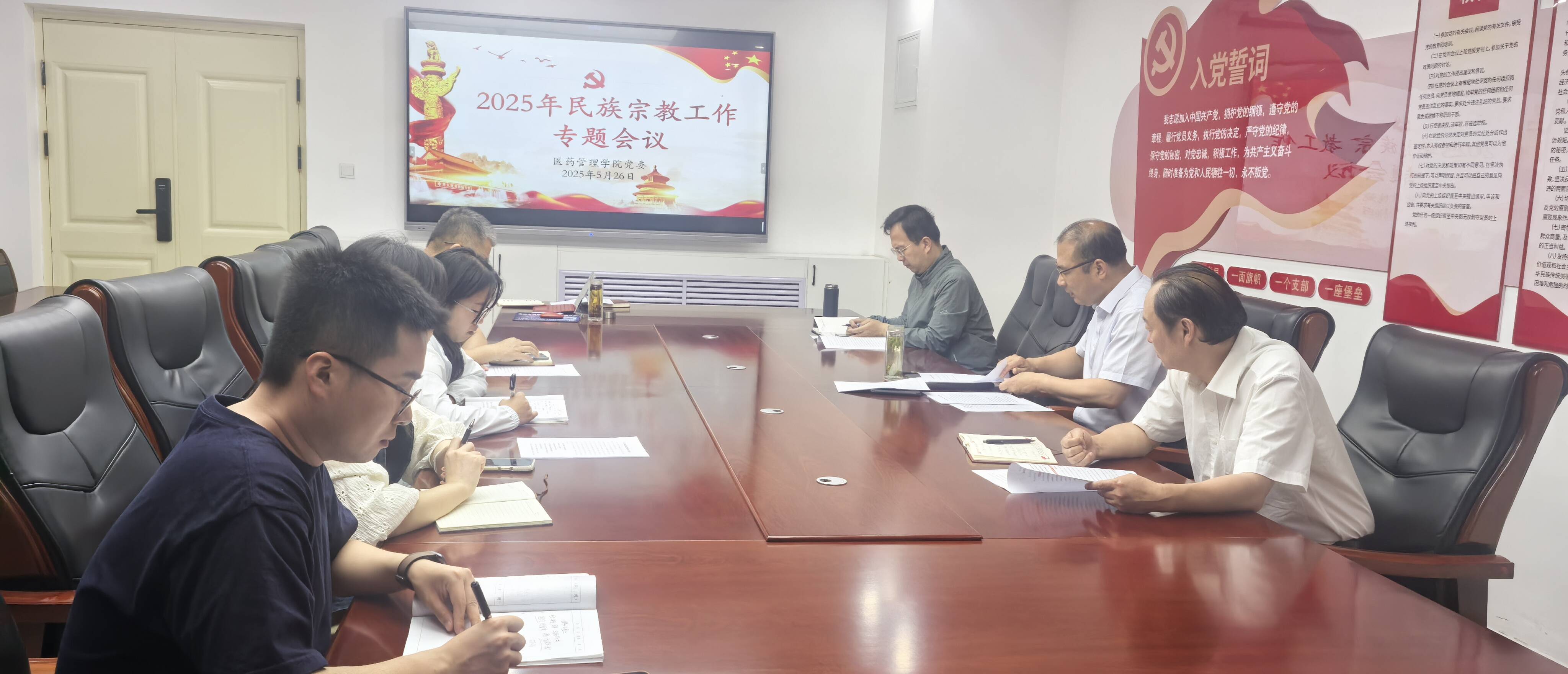 2025年5月26日,医药管理学院举行党委理论学习中心组(扩大)2025年第七次学习会议,专题学习研究民族宗教工作,会议由学院党委书记苏宝利主持。