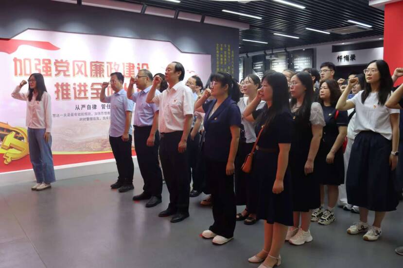 参观最后,全体党员肃穆列队,重温入党誓词。誓言铮铮,响彻场馆,这不仅是对入党初心的回溯,更是对践行中央八项规定精神、坚守廉洁底线的郑重承诺,充分展现了党员们矢志不渝坚守初心使命、持之以恒弘扬清风正气的坚定决心。