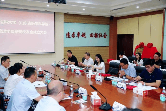 教学实践基地揭牌仪式过后,医药管理学院泰安校友会成立大会随即召开。