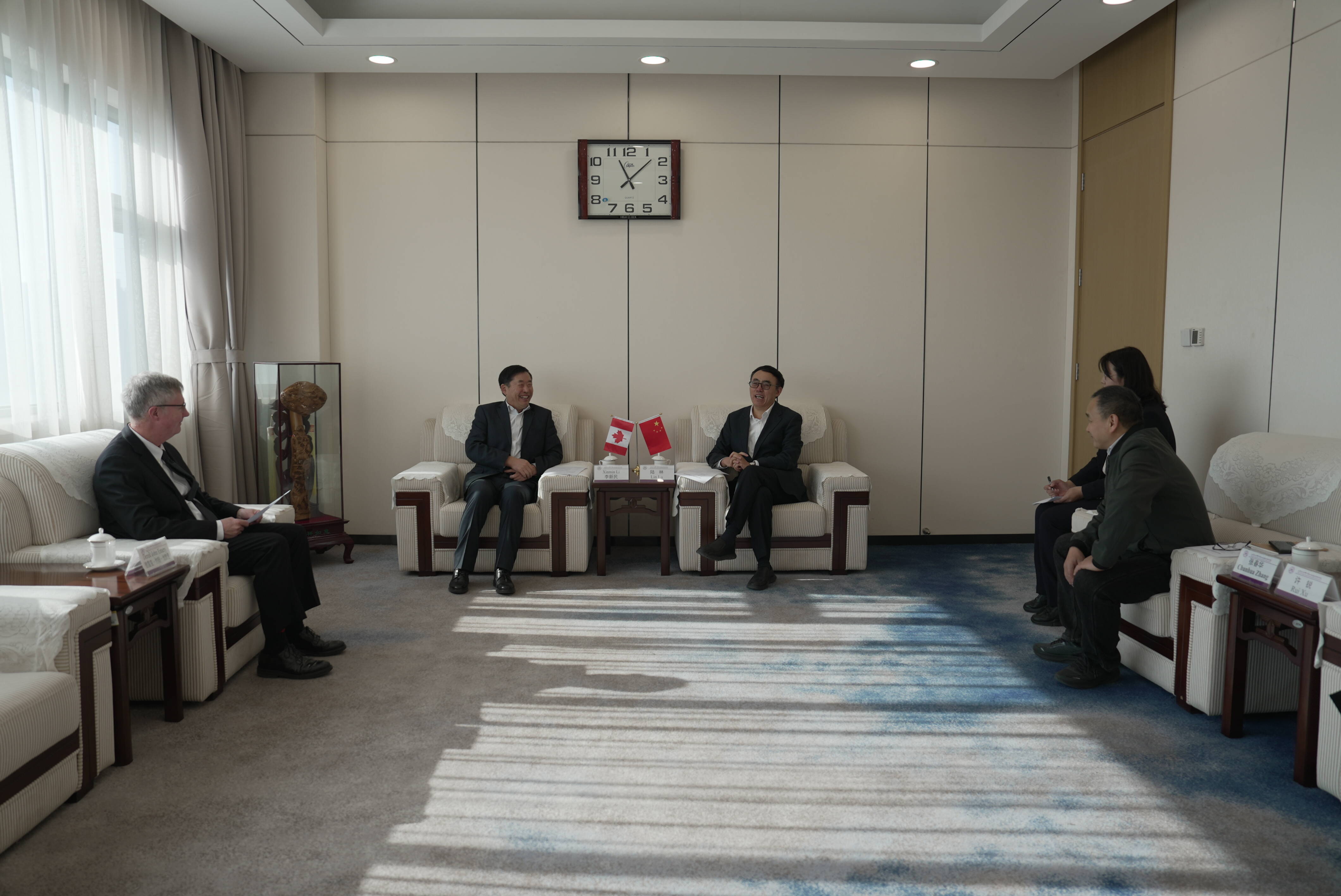 12月4日,加拿大健康科学院院士、阿尔伯塔大学医学与牙科学院李新民教授,阿尔伯塔大学医学与牙科学院放射学与诊断成像系主任德雷克·约翰·埃默里教授来校(院)交流访问。中国科学院院士、校(院)长陆林会见客人。