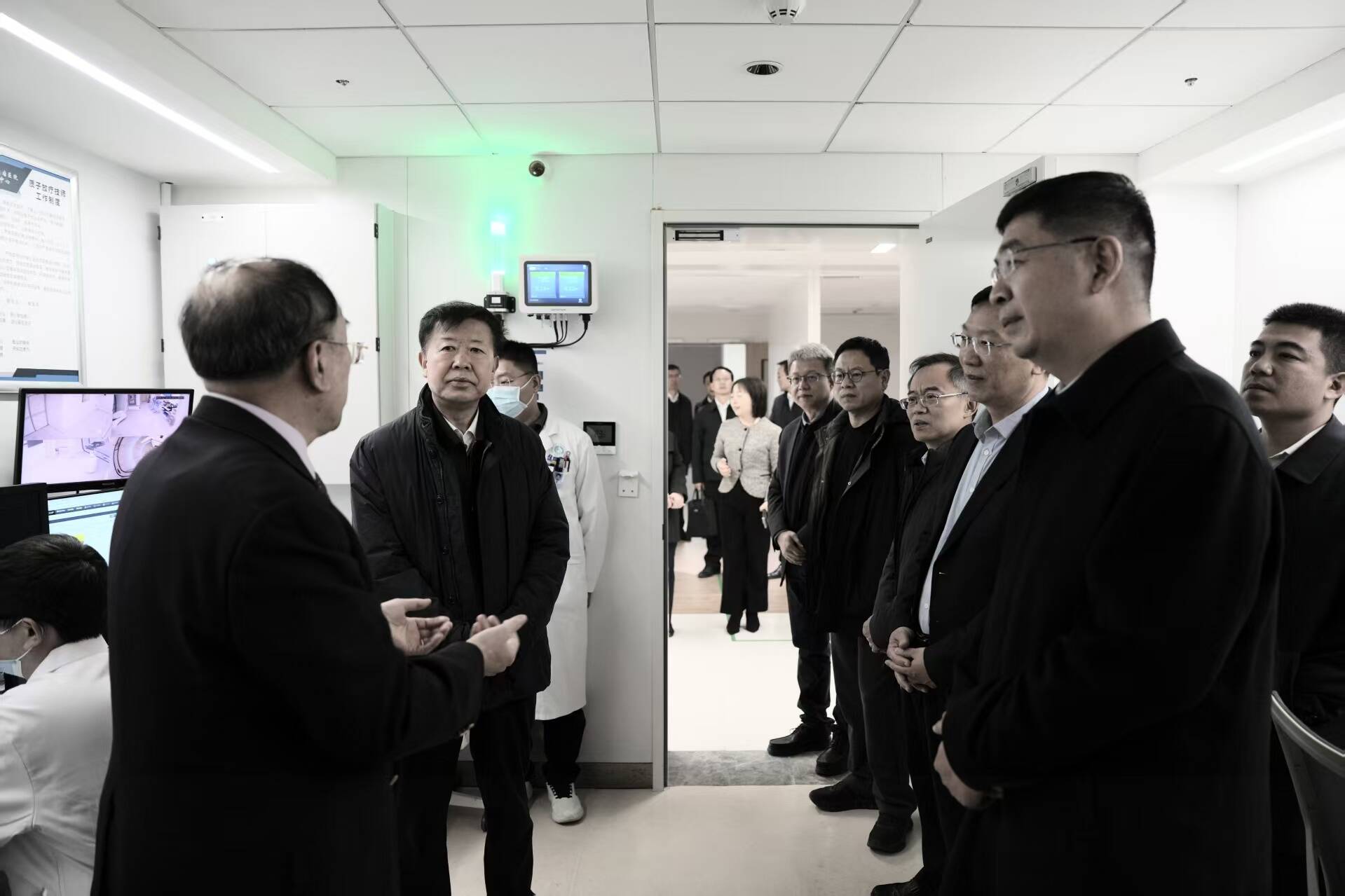 与会人员首先参观了附属肿瘤医院质子中心,于金明在介绍中指出,质子中心建设速度创世界之最,运行两年来,累计治疗患者2000余例,单日治疗人次全球第一;二期重离子中子项目正在加速推进中,将率先建成国际全链条肿瘤放疗技术体系,实现放疗学科国际领先,造福广大肿瘤患者。在集体学习中,于金明以《以人才创新为引擎 推动医院高质量发展》为题作专题发言,围绕科研创新、人才建设、教育教学、医疗服务、开云体育官网下载入口等方面,系统分享了医院坚持科技、人才、教育一体化发展战略,深耕科教医融合实践的宝贵经验,全面展现了医院在高质量发展征程中取得的丰硕成果。