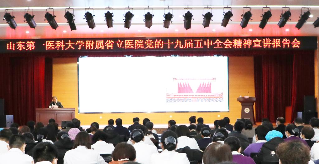 12月17日下午,校(院)党委委员、常务副书记韩金祥到山一大附属省立医院作题为《深入学习贯彻党的十九届五中全会精神奋力谱写研究型现代化强院建设新篇章》的宣讲报告。报告会在附属省立医院中心院区妇儿综合楼六楼报告厅设主会场,东院区设分会场。