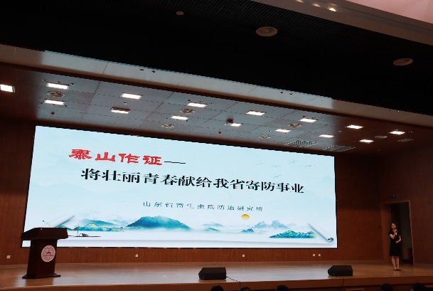 校(院)所属山东省寄生虫病防治研究所的毕蕾以《泰山作证——将壮丽青春献给我省寄防事业》为题,讲述了以王兆俊、仲崇祜、程义亮为代表的山一大老一辈防治专家,埋头苦干、无私奉献,创造了以省为单位在全国率先基本消灭黑热病、丝虫病、疟疾三大“瘟神”奇迹的感人事迹。