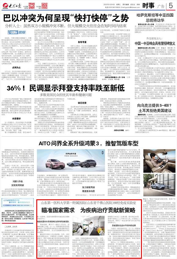 “我们的研究旨在探索临床疾病的发病机制,以期发现新的干预靶点,为疾病治疗提供新策略。”在这样的定位引领下,未来三年,山一大一附院神经免疫实验室将聚集一批国内有相当影响力的学术带头人和省内知名的优秀学术骨干,成为高素质人才的培养基地和原始创新性成果的产出基地,建成国内一流水平的神经免疫疾病研究中心和开放性实验室。