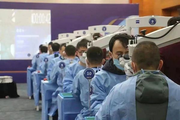 第四届中国医师协会显微外科医师年会于3月3日-3月4日在西安举行,其中“血管吻合大赛”被业内公认为目前国际、国内同类比赛中最具权威、水平最高的比赛。比赛共有来自全国各地92支队伍共180多人参加,比赛分为初赛和决赛两部分。初赛赛制为吻合直径2.5mm硅胶管,用12-0的显微缝合线吻合6针,预赛采取评委与比赛现场分离、比赛场内设置10台显微镜,比赛前所有代表队通过抽签方式决定分组及出场顺序,选手入场前再次随机抽签决定显微镜位置,评委只能通过大屏远程观看选手的镜下操作,看不到选手,保证了比赛的公平、公正。决赛赛制为吻合直径0.2mm小白鼠尾中动脉,用12-0显微缝合线吻合4针,限时15分钟,吻合后血管必须通血。0.2mm和一个细胞大小差不多,通俗来讲就是缝针和缝线要比头发丝还要细,只能在高倍显微镜下才能进行缝合,操作是至今人类能吻合成功最细的管径。只有经过千锤百炼,才能逐步掌握这种显微外科技术。