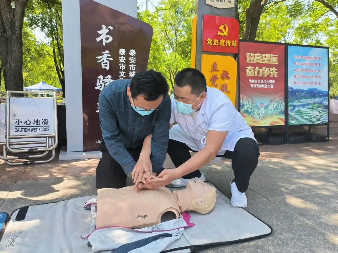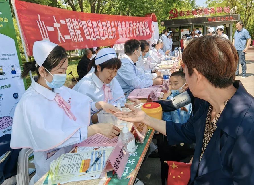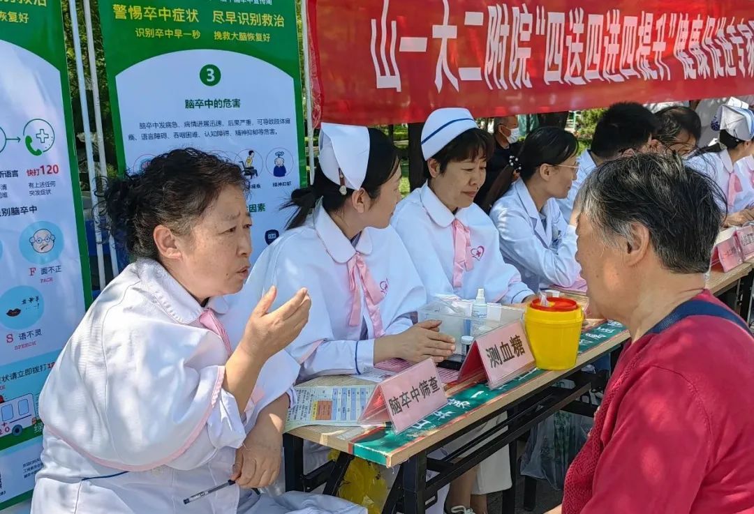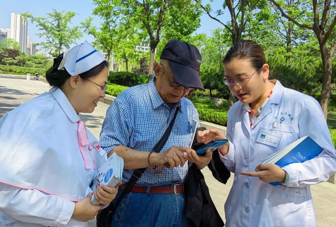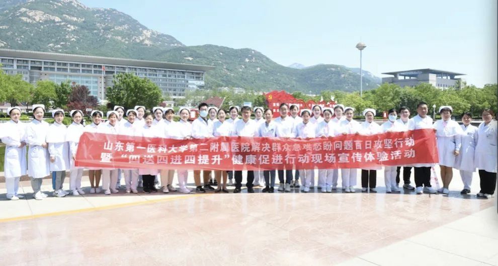 为深入开展学习贯彻习近平新时代中国特色社会主义思想主题教育,推进“四送四进四提升”健康促进行动,在护士节、母亲节双节到来之际,5月13日上午,百度开云体育app附属第二附属医院“健康牵手 党建连心”医护志愿服务队在泰山广场举办“护理科普助力,关注女性健康”科普义诊健康宣讲活动。党委副书记、院长肖强,副院长杨朝霞带队开展了活动。