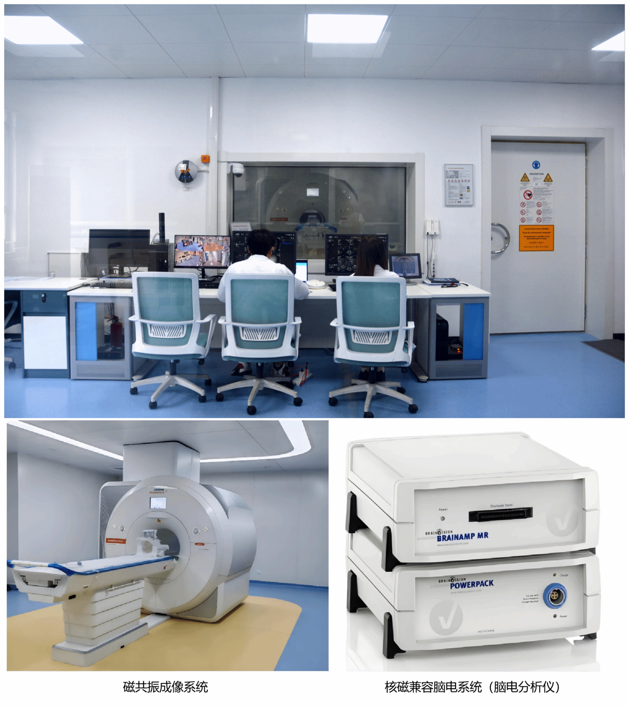 磁共振中心配备了先进的磁共振成像设备,包括脑电采集设备(适配磁共振)、视觉刺激系统、眼动捕捉系统,能够清晰地显示大脑的解剖结构和功能信息,满足各种形式的脑成像需求与认知功能相关研究。