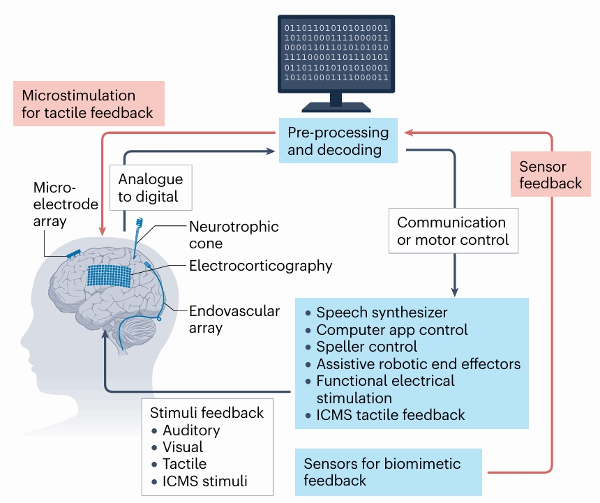 报告系统回顾了侵入式脑机接口在多种神经系统疾病中的成功应用。对于高位截瘫和肌萎缩侧索硬化症患者,通过解码大脑运动皮层神经元放电信号(Spike),患者能够控制机械臂完成三维空间的运动,实现部分生活自理能力。在难治性癫痫领域,基于皮层局部场电位(LFP)解码的反馈式脑深部或皮层电刺激,为那些药物无效或不适合传统手术的患者提供了新的控制发作的选择。针对脊髓损伤低位瘫痪反馈式脊髓电刺激技术结合脑信号解码,已在临床试验中帮助患者重新获得行走能力。对于中风后失语患者,团队展示了通过解码相关皮层的LFP信号,驱动合成语音输出的脑机接口技术,为患者重建沟通桥梁。