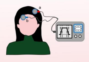 tDCS包括作用电极和参照电极,前者放置于目标脑区,调节大脑功能,后者放置于身体其它部位,不影响神经调节。作用电极通常阳极与阴极各置一端,阳极电极置于靶区上方称为阳极tDCS,而阴极电极置于靶区上方则称为阴极tDCS。电极放置位置常见于背外侧前额叶皮层,运动皮层M1,前额叶皮层,枕叶,眶上区,乳突等。治疗前,将套在阴阳两极输出的电极片外的海绵套使用生理盐水浸润,接着将阴阳两极电极片分别放置于目标靶区,用弹力绷带或弹力帽固定,最后由控制软件设置输出电流的大小及作用时间。