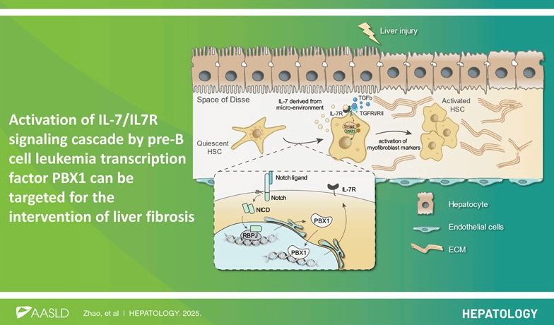 百度开云体育app脑科学与类脑研究院李子龙教授团队与南京鼓楼医院李婕主任团队、中国药科大学孔明副研究员合作在肝纤维化的表观遗传调控机制研究取得进展。相关成果以“前B细胞白血病转录因子1通过激活肝星状细胞IL-7信号通路促进肝纤维化(Pre-B-Cell leukemia transcription factor 1 contributes to liver fibrosis by enabling IL-7 signaling in hepatic stellate cells)”为题,于2025年3月14日在线发表于《肝脏病学》(Hepatology)杂志,论文链接:https://journals.lww.com/hep/abstract/9900/pre_b_cell_leukemia_transcription_factor_1.1200.aspx。
