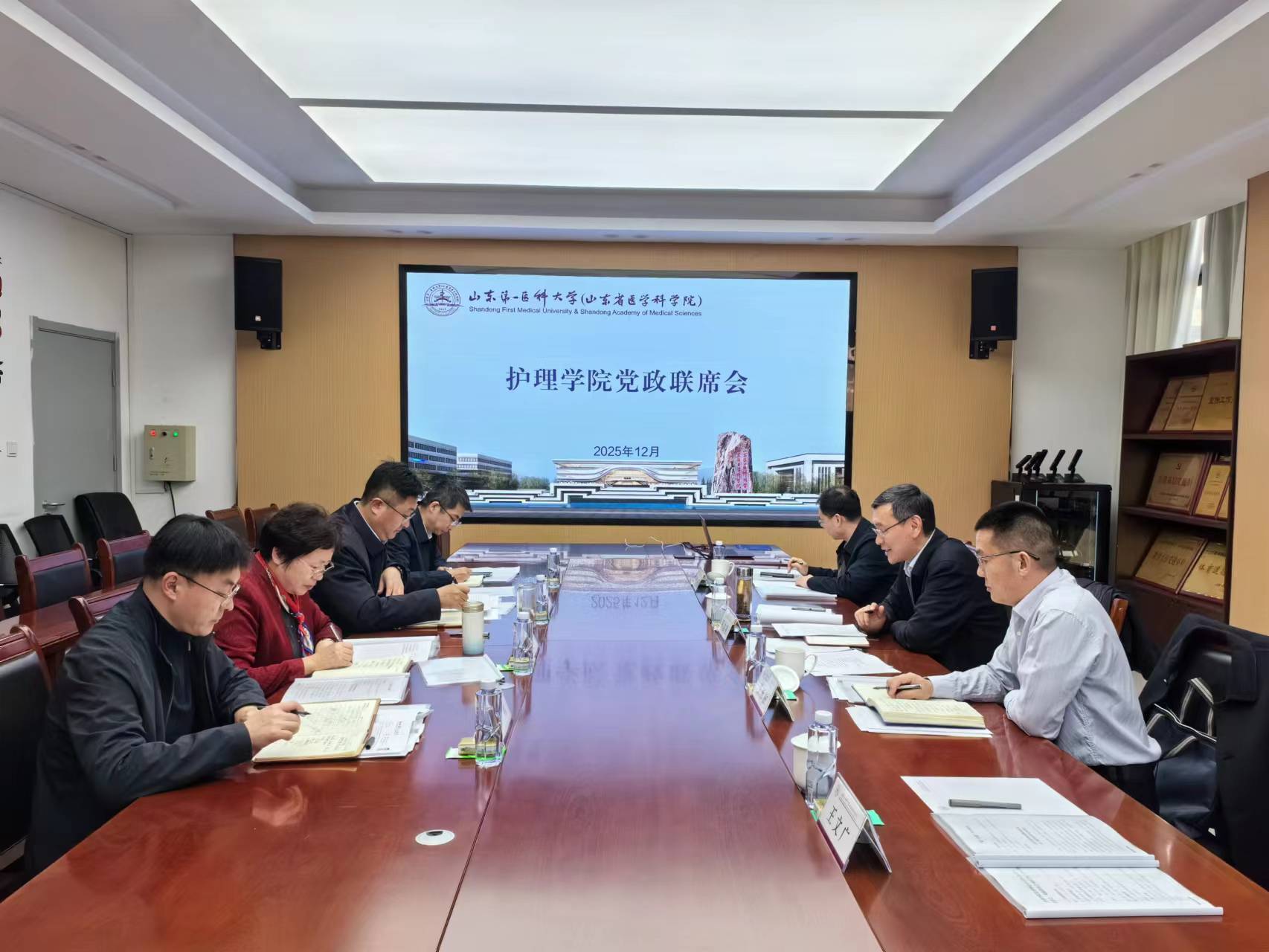 近日,校(院)党委委员、第一附属医院(省千佛山医院)党委书记孙志坚列席护理学院党委理论学习中心组学习、党委会会议和党政联席会会议,并对省委巡视反馈问题整改落实工作进行专项督导。 孙志坚对护理学院党委理论学习中心组学习的成效,党委会会议和党政联席会会议的职责边界、决策原则及组织程序给予了充分肯定。他在点评时指出,一是提高政治站位,深入学习贯彻习近平总书记关于党的建设的重要思想,不断提高政治判断力...