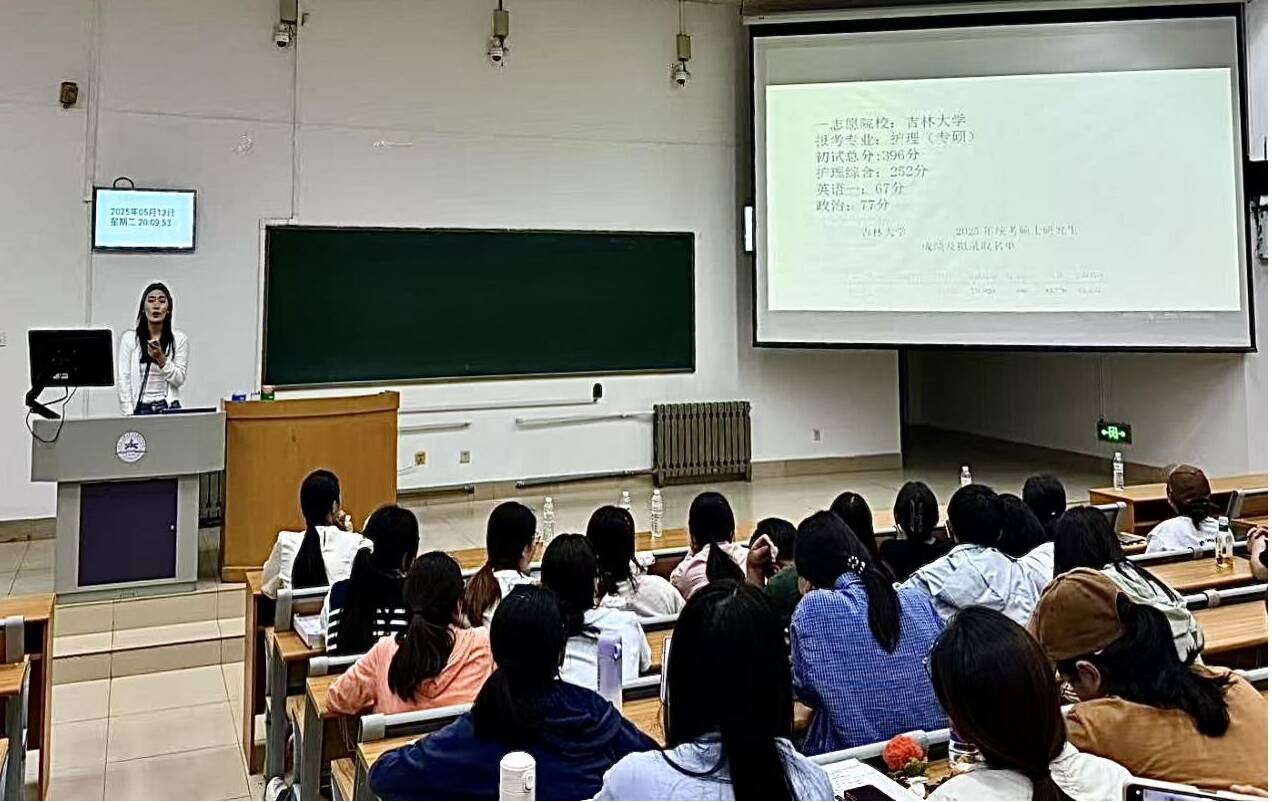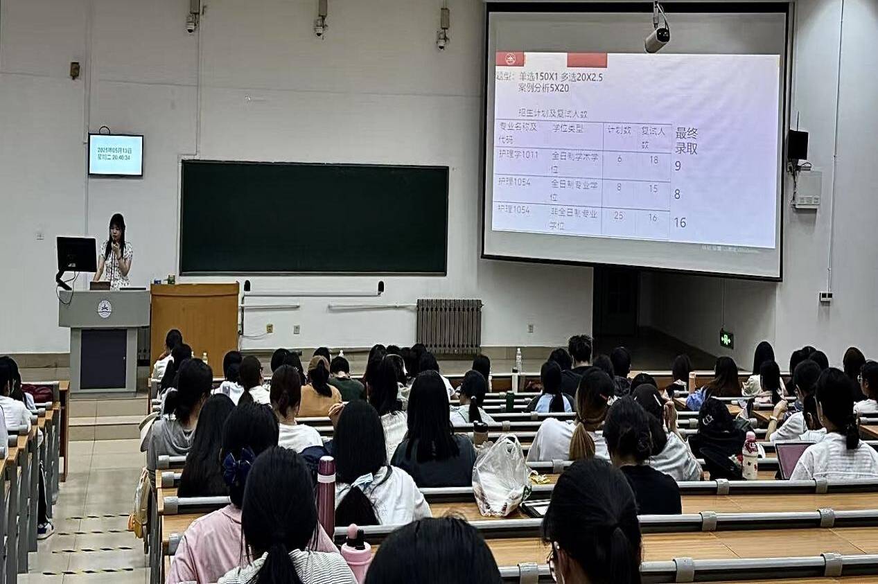 林桦结合学院2025届毕业生考研情况和就业情况,为同学们分析了当前的就业形势和未来前景,他表示,随着医院护理岗位趋近饱和,就业门槛的不断提升,考研是应对挑战的重要途径和理想选择。