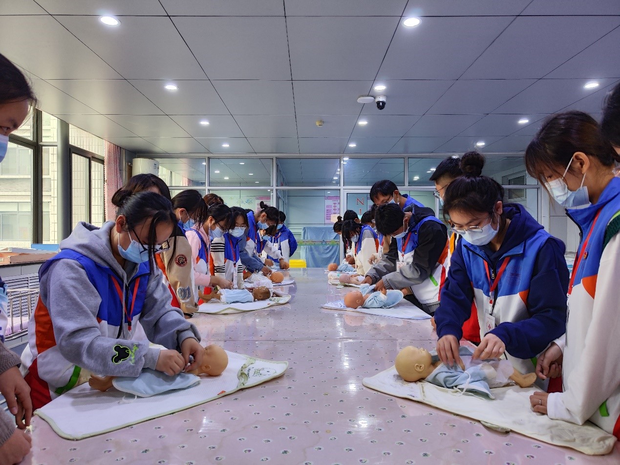 本次活动主要针对学院南丁格尔志愿服务队急救技术中队和母婴护理中队的新队员开展业务训练。急救技能培训由中队指导教师孙霞老师负责。她向队员详细讲解了心肺复苏的操作流程与要点,科普了AED的使用方法。母婴护理技能培训由妇儿教研室教师杨红霞老师负责,内容涵盖婴幼儿健康观察与保健管理、日常生活照护等。志愿者们认真聆听,在老师的讲解和演示下,反复进行训练,比较快的掌握了志愿服务要求具备的基本技能。