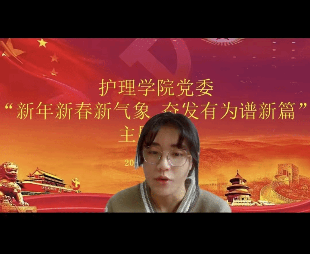 为进一步加深全体学生党员对习近平主席新年贺词的理解和认识,1月12日,护理学院党委在全体学生党员中开展“新年新春新气象 奋发有为谱新篇”线上主题党日活动。学院党委书记张延玲参加活动。副书记林桦主持。