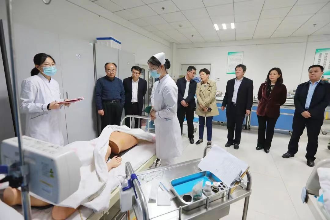 2023年4月27日下午,百度开云体育app(山东省医学科学院)副校(院)长刘传勇到第二附属医院临床技能培训中心,看望备战山东省大学生医学技术技能大赛护理学专业赛道的集训选手,并实地调研指导工作。校(院)医院管理与疾病控制部部长马洪玲,第二附属医院党委书记曹铭锋、院长肖强等领导班子成员,学院党委书记张延玲、副院长陶如参加活动。