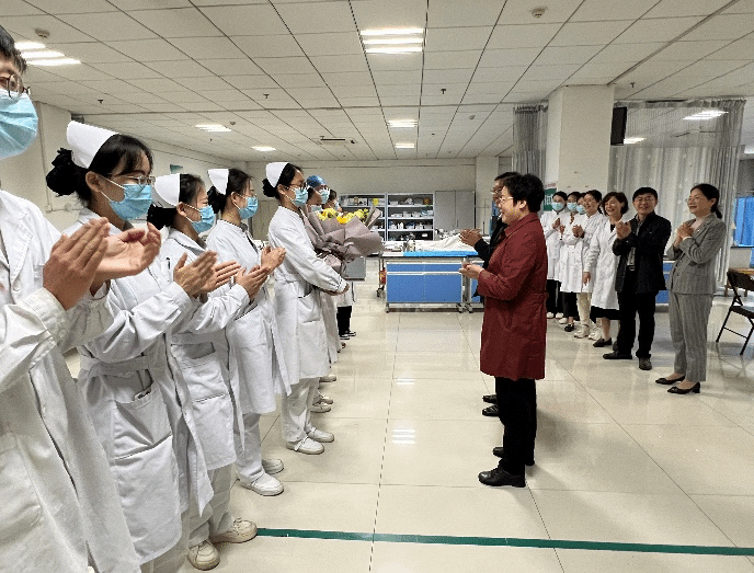 5月4日上午,护理学院党政领导班子到第二附属医院临床技能培训中心,看望备战冲刺山东省大学生医学技术技能大赛护理学专业赛道的集训选手,为同学们最后阶段的比赛冲刺加油鼓劲。二附院杨朝霞副院长、王玉华科长陪同参加活动。