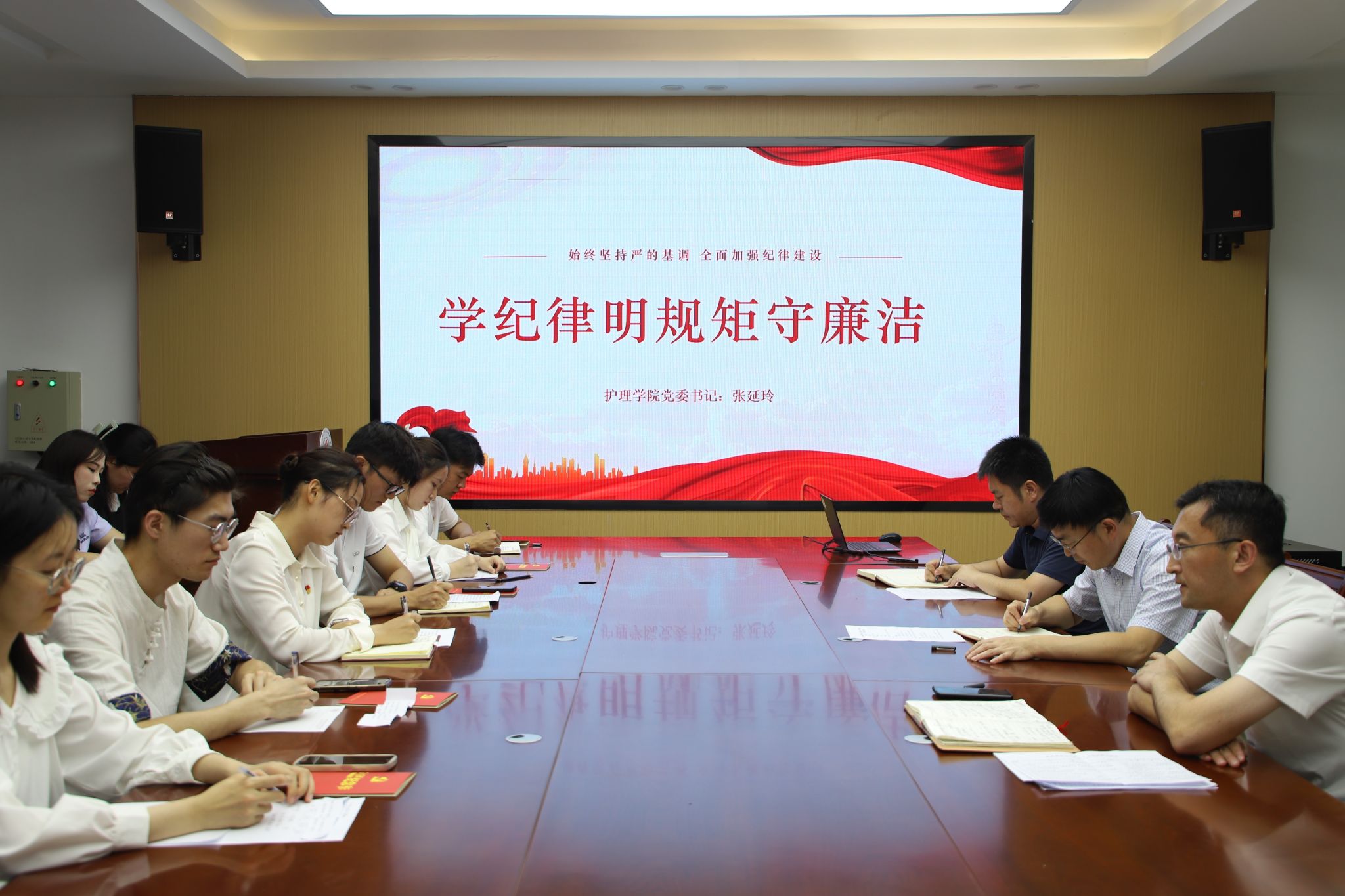 为扎实推进党纪学习教育走深走实,进一步推动党纪党规入脑入心,近日,护理学院党委书记张延玲以《学纪律明规矩守廉洁》为题讲授专题党课。