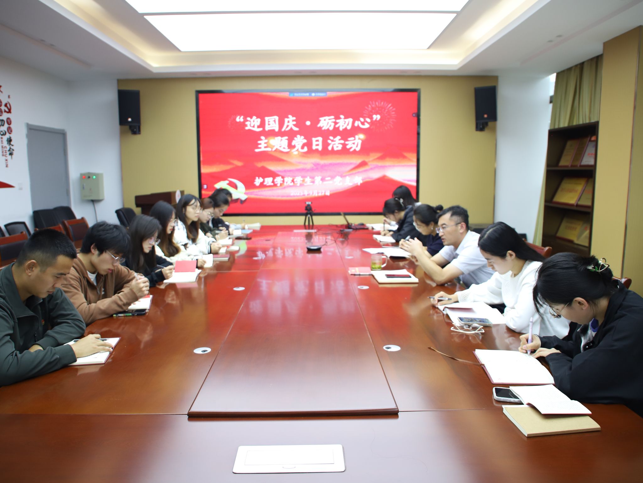 为庆祝伟大祖国74华诞,进一步激发广大党员的爱国之情、报国之志、强国之责,9月27日,护理学院学生第二党支部在会议室开展“迎国庆 砺初心”主题党日活动。学院党委书记张延玲,党支部副书记王雯雯和学生党员参加活动,党支部书记张恒丽主持。