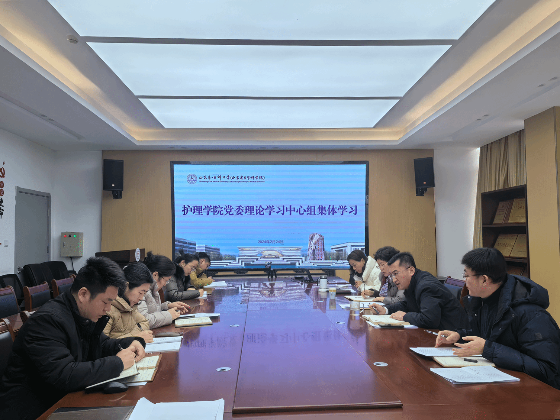 2月24日,护理学院党委理论学习中心组专题学习校(院)管理人员培训班会议精神。学院党委书记张延玲主持学习。