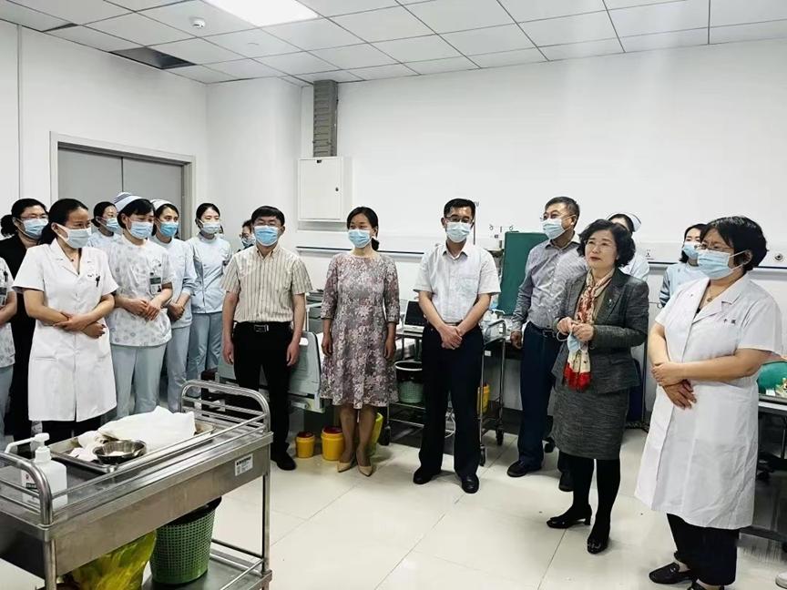 为进一步了解省赛培训情况,关心关怀参加省赛选手,5月18日,学院同校(院)医院管理与疾病控制部领导集体赴第一附院看望正在积极训练、全力备战省赛的师生。医控部副部长李晓冰、学院院长柳韦华、党委书记张延玲、副院长陶如、副书记林桦等参加,第一附院副院长许翠萍、护理部主任季红等陪同参加活动。