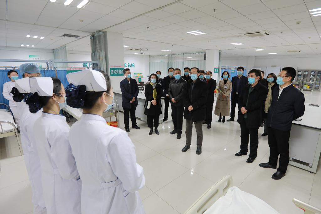 2月19日,春节刚过,校(院)党委常务副书记韩金祥、副校(院)长王鹏程赴第二附属医院开展护理实践教学专项调研工作。首先听取了第二附属医院主要负责同志关于护理实践教学工作的专题汇报,然后到技能中心看望春节期间一直坚持培训的教师和护理学生,观看了学生护理学技术技能专项训练。