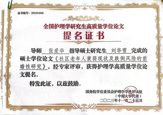 护理学院研究生在全国“护理学研究生高质量学位论文”评选中喜获佳绩